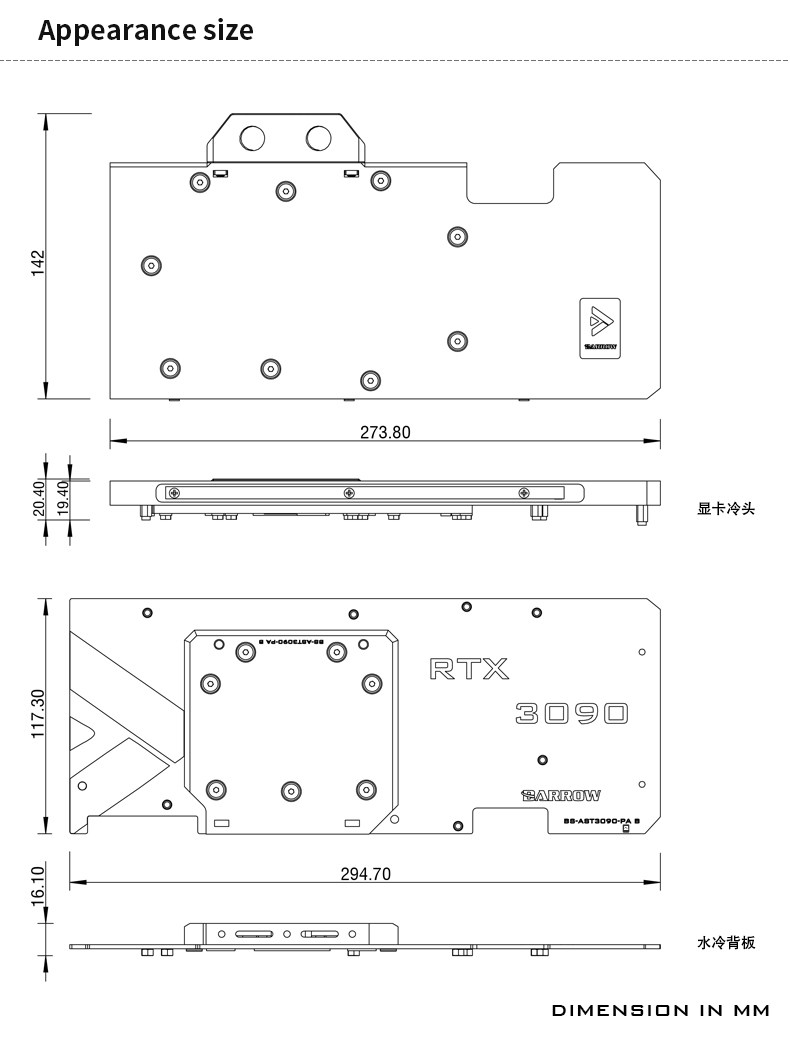 Barrow LRC2.0 full coverage GPU Water Block for ASUS TUF 3090 Aurora BS-AST3090-PA2